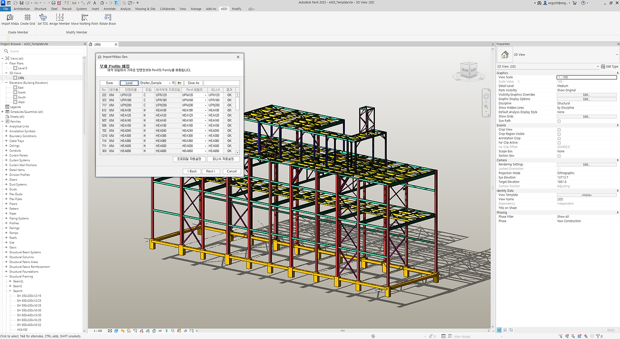 이번 포스트에는 Revit에서 Midas 구조해석 파일을 불러와